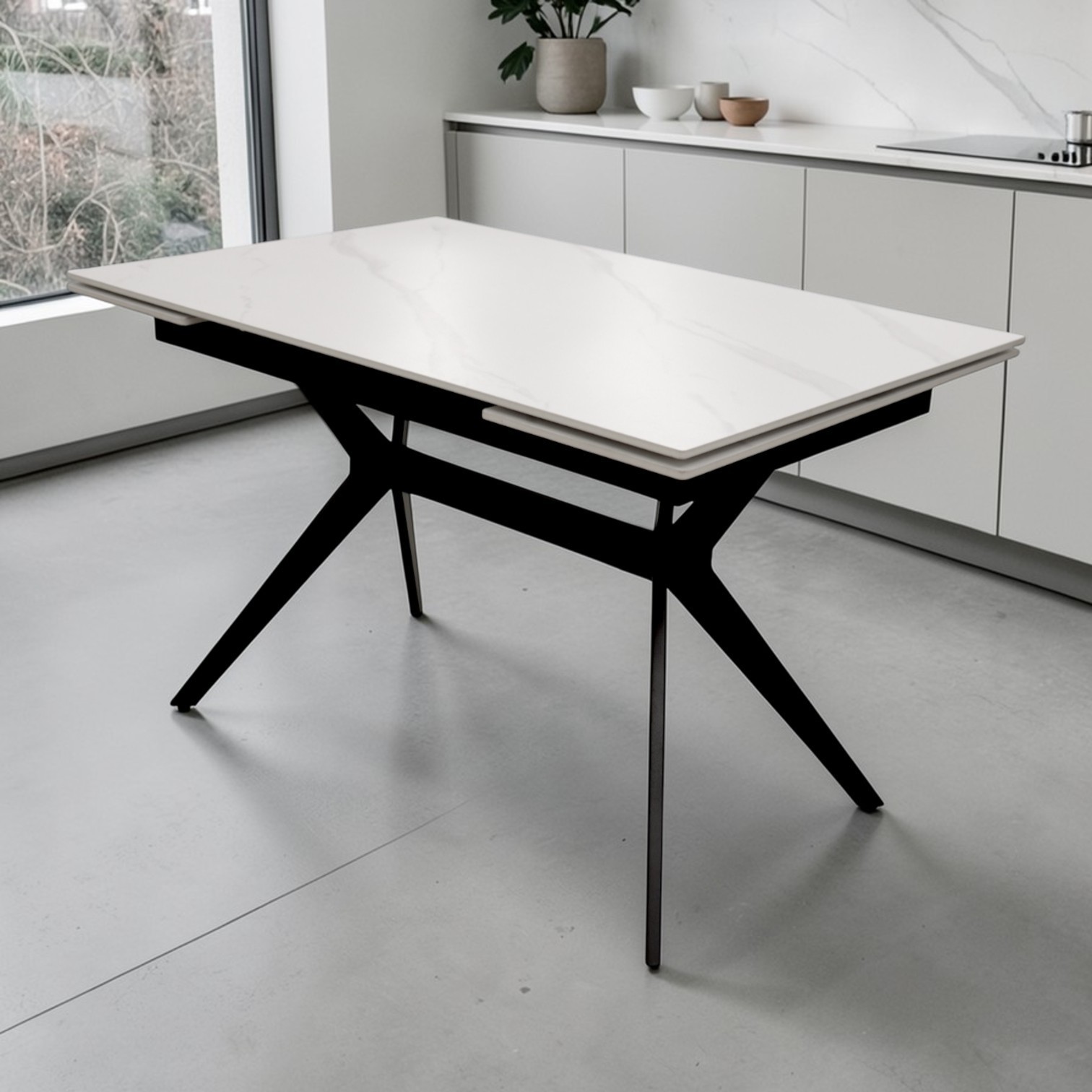 Стол DTM 0412 CS, 120+30+30*80*76,Керамика цвет мрамор белый Y15, ножки черные