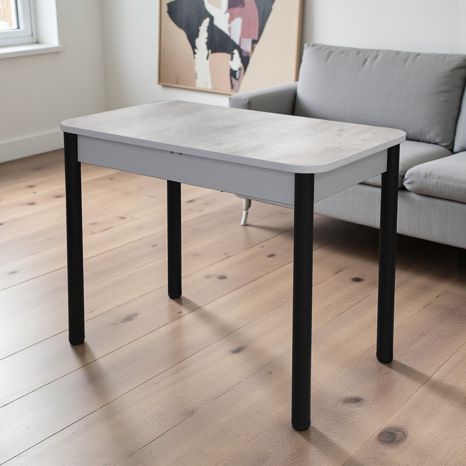 —Стол Беседа НЕРАСКЛ 980*580 Пластик (Метрополитан) B1, Опоры черные+ЛДСП Металлик