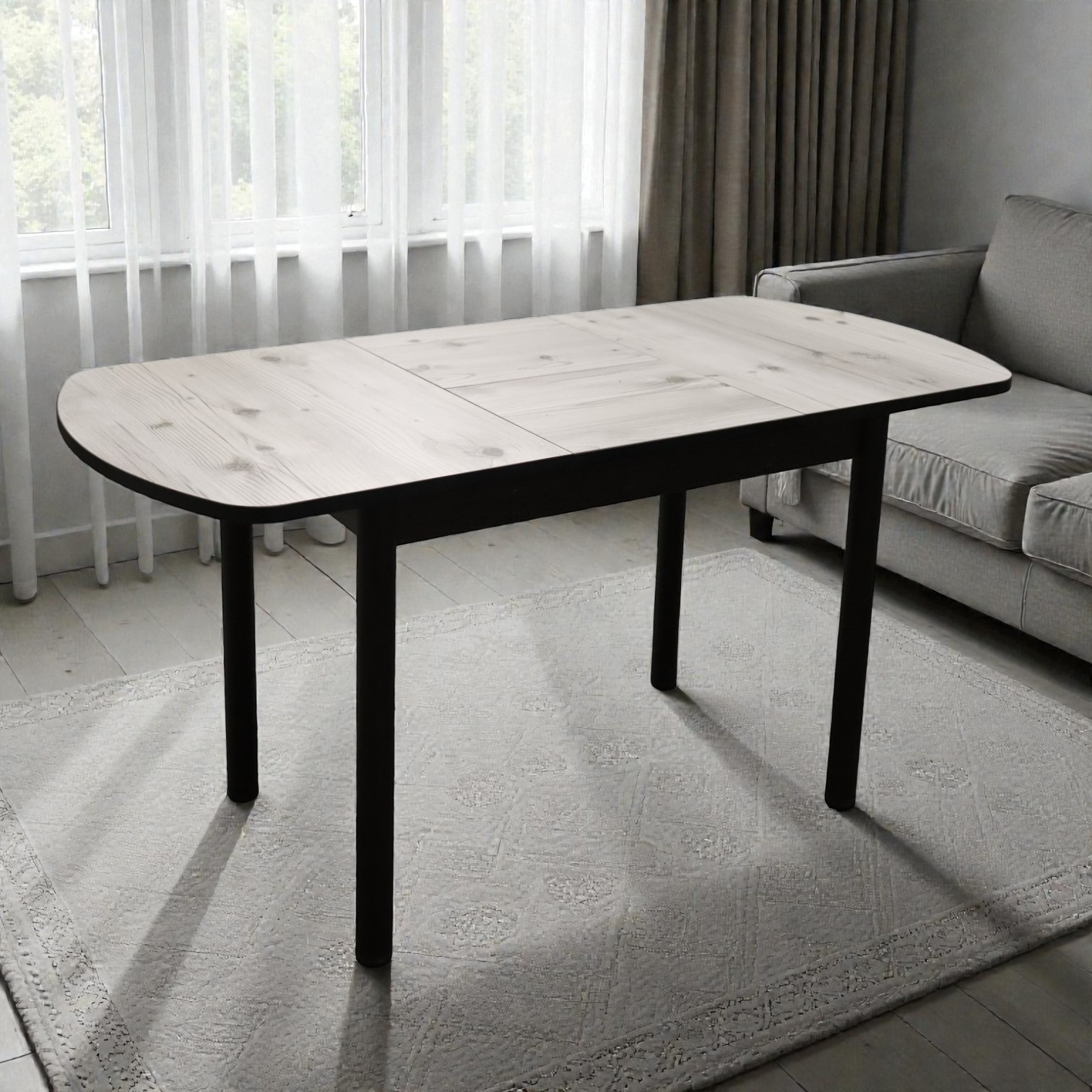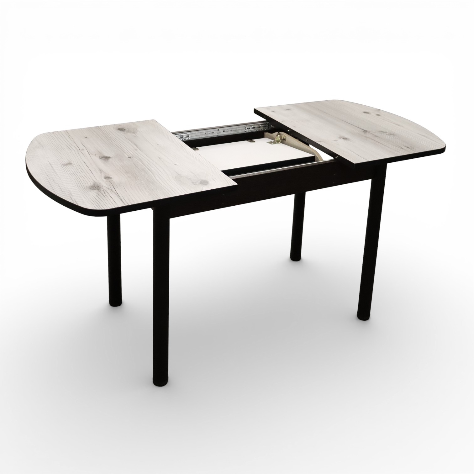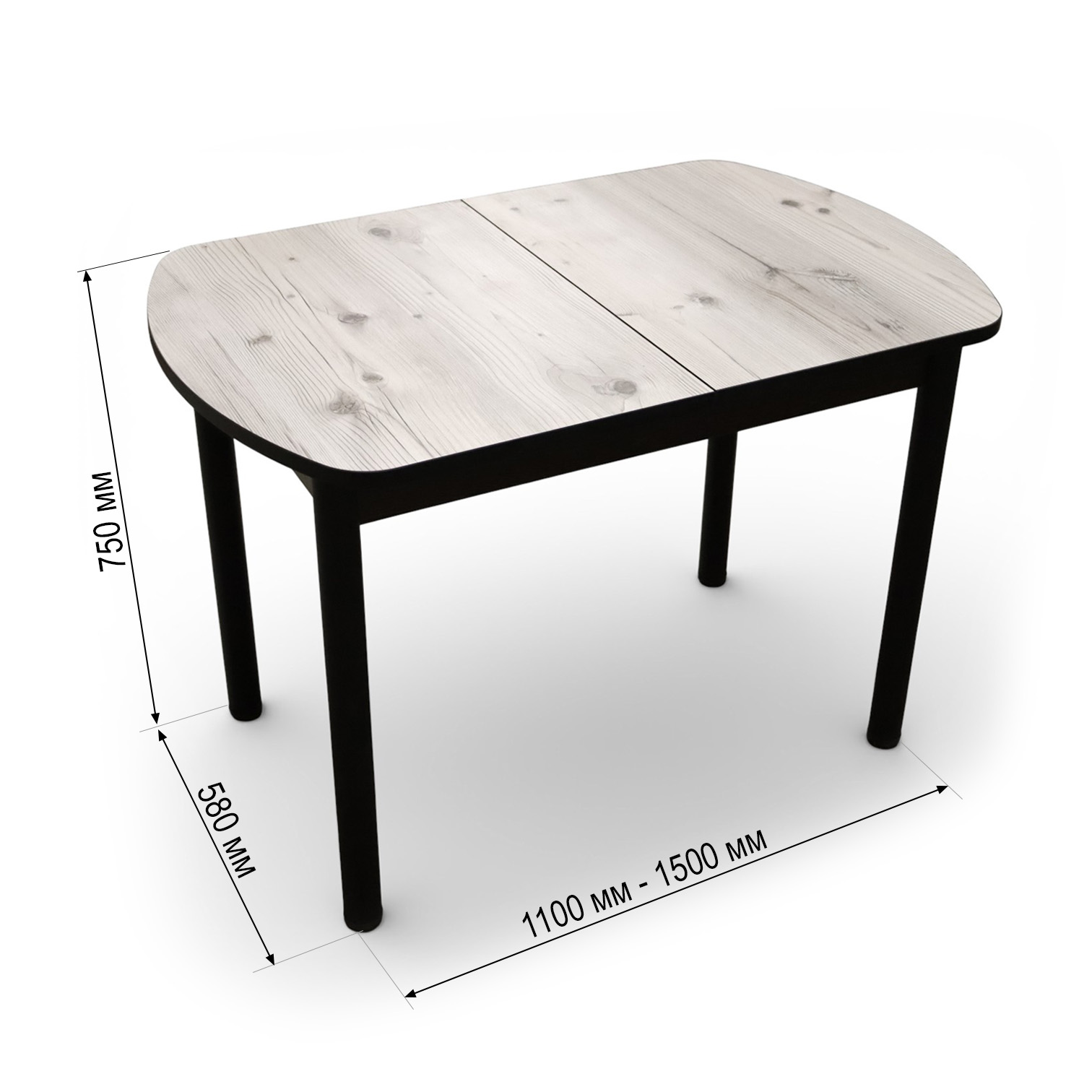 —Стол Фаворит 1100(+400)*700 Пластик Бискайск.сосна,бабочка(B5)/ЛДСП бодега темн+опоры(черн)