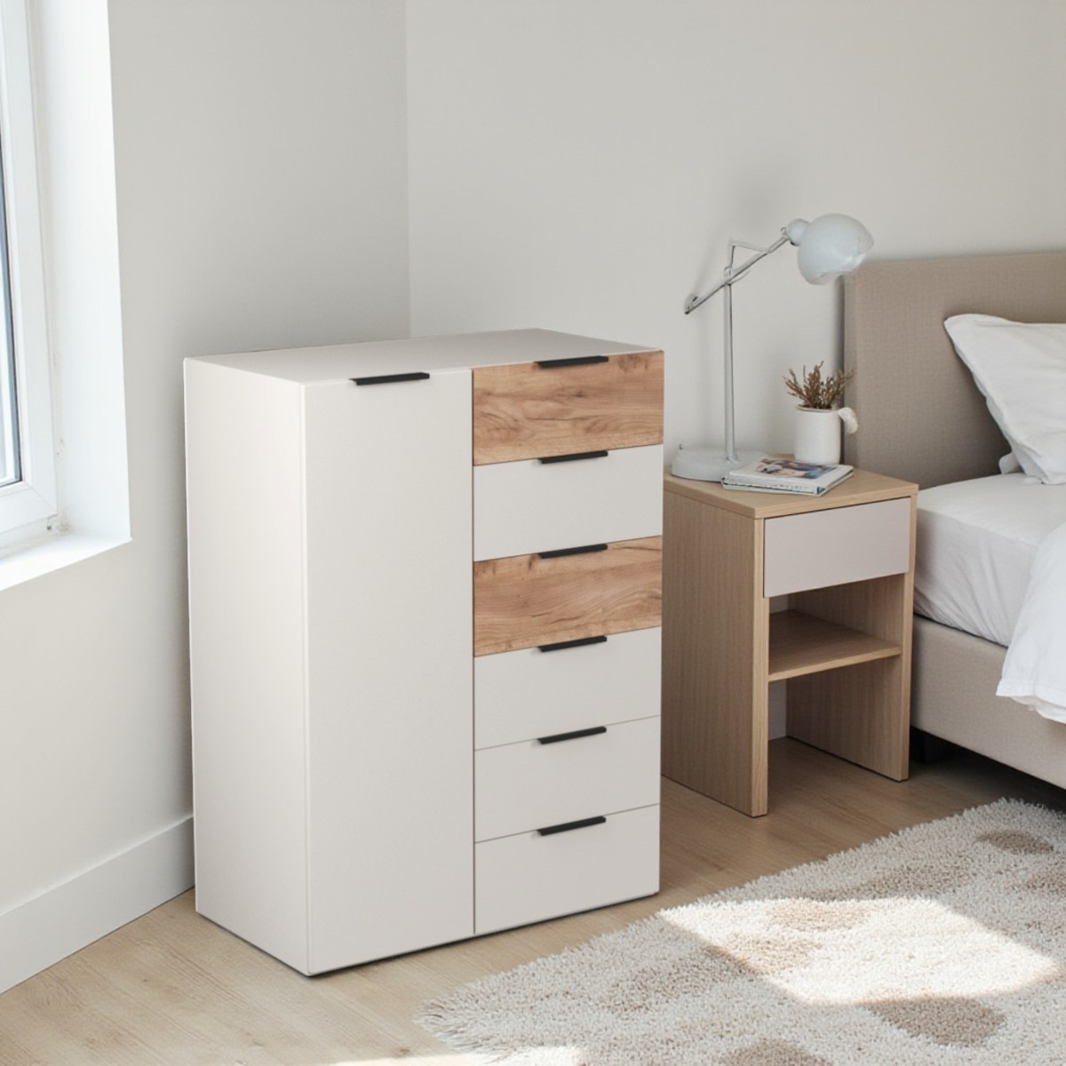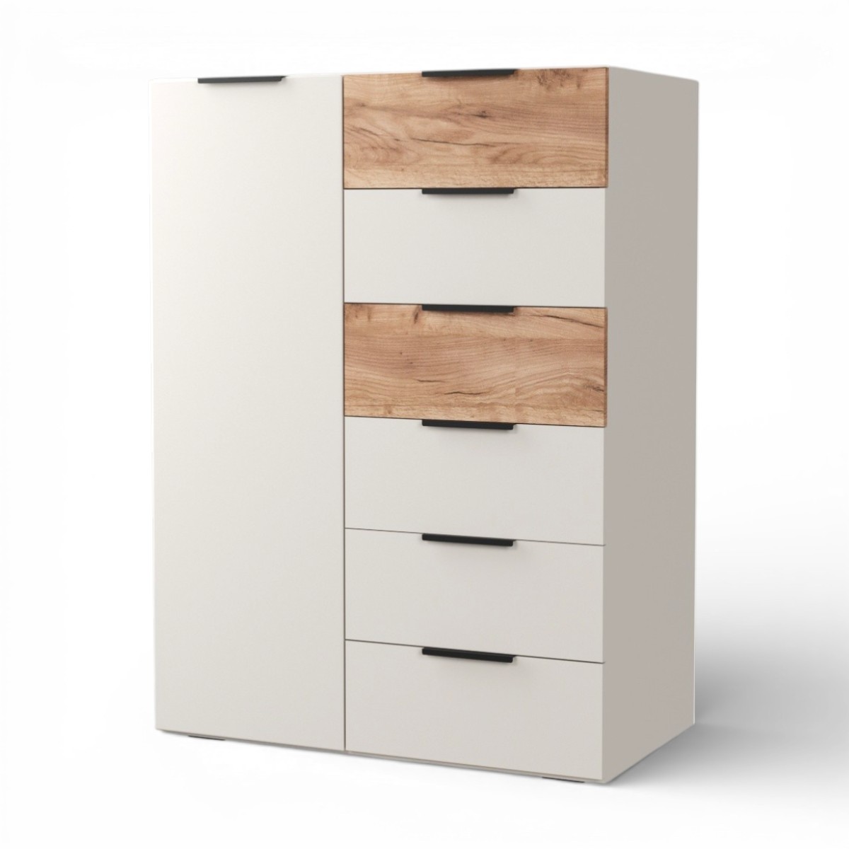 —Комод Севиль 1 дв.6 ящ/Кашемир/Дуб крафт