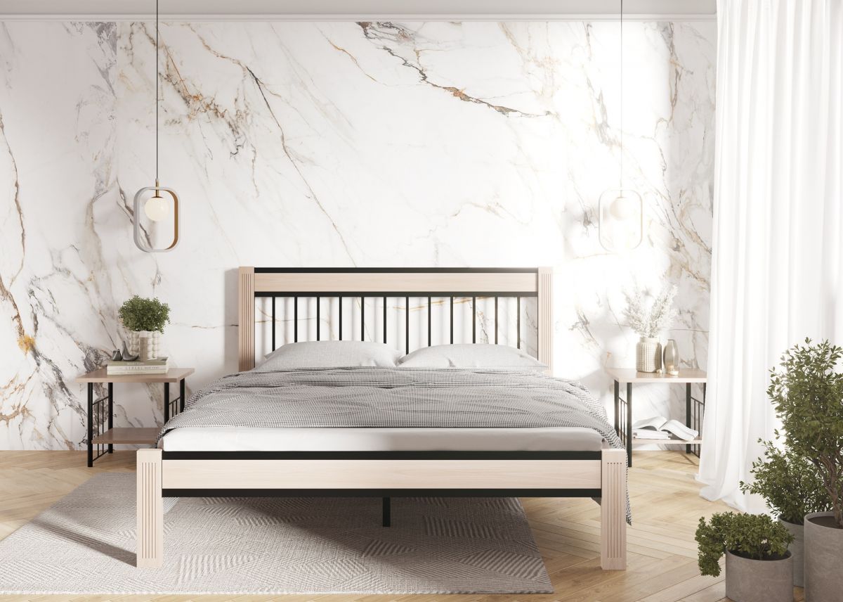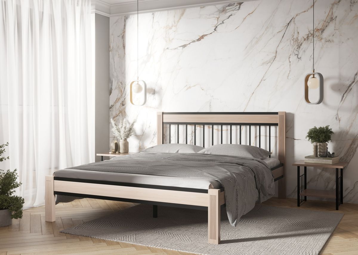Кровать «Агата» — это надежная и долговечная модель, выполненная из комбинации металла и натуральной древесины.