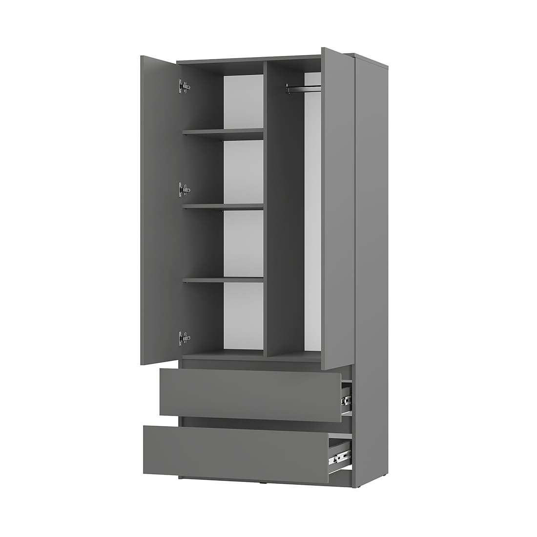 • Продуманное хранение: внутри расположена штанга для верхней одежды и два вместительных ящика на плавных шариковых направляющих.