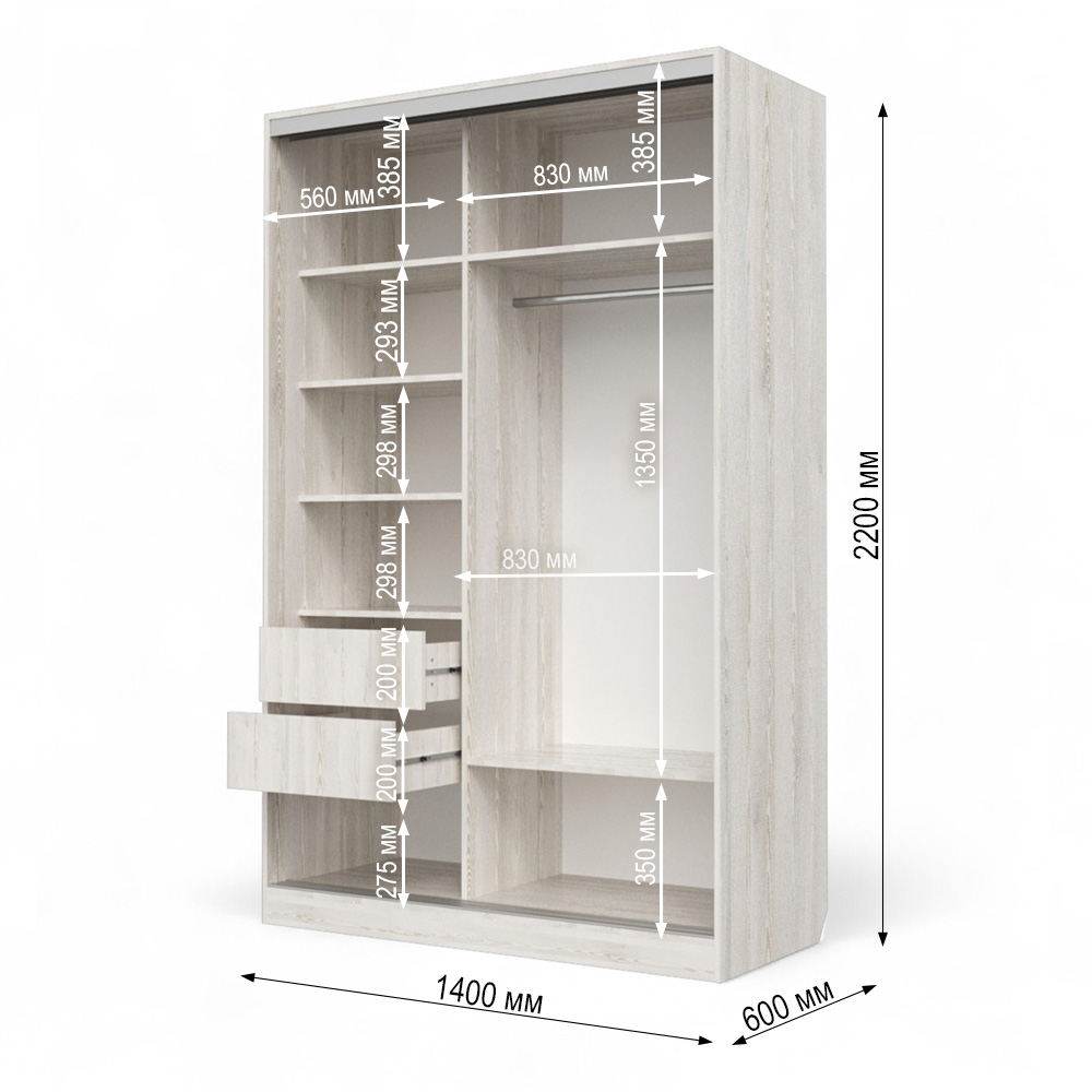 —Шкаф-купе Клэр 1400х597х2200 с ящ/сосна лофт-хром